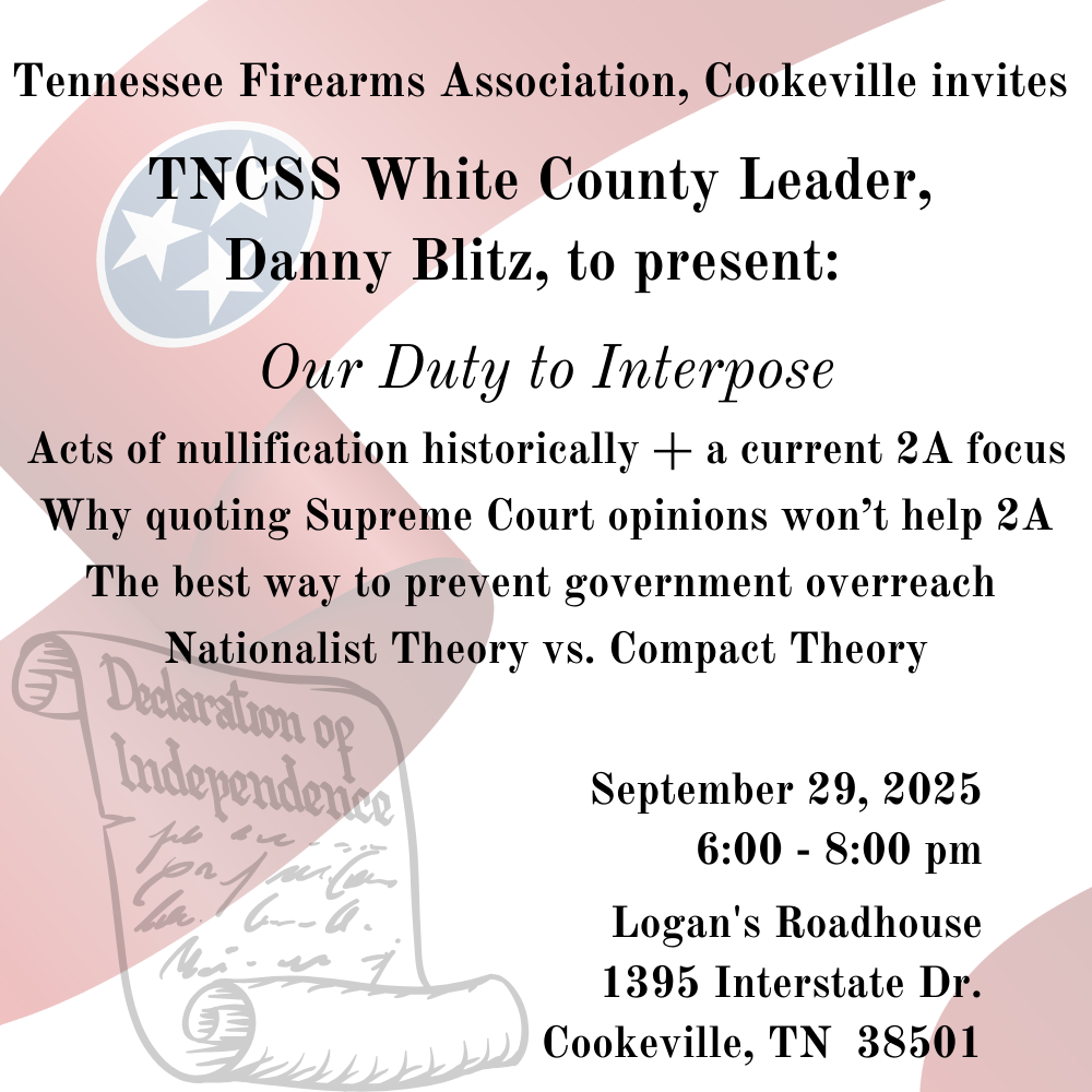 - Tennessee Neighbors for Liberty, Ooltewah, Hamilton County, Featured Speaker
